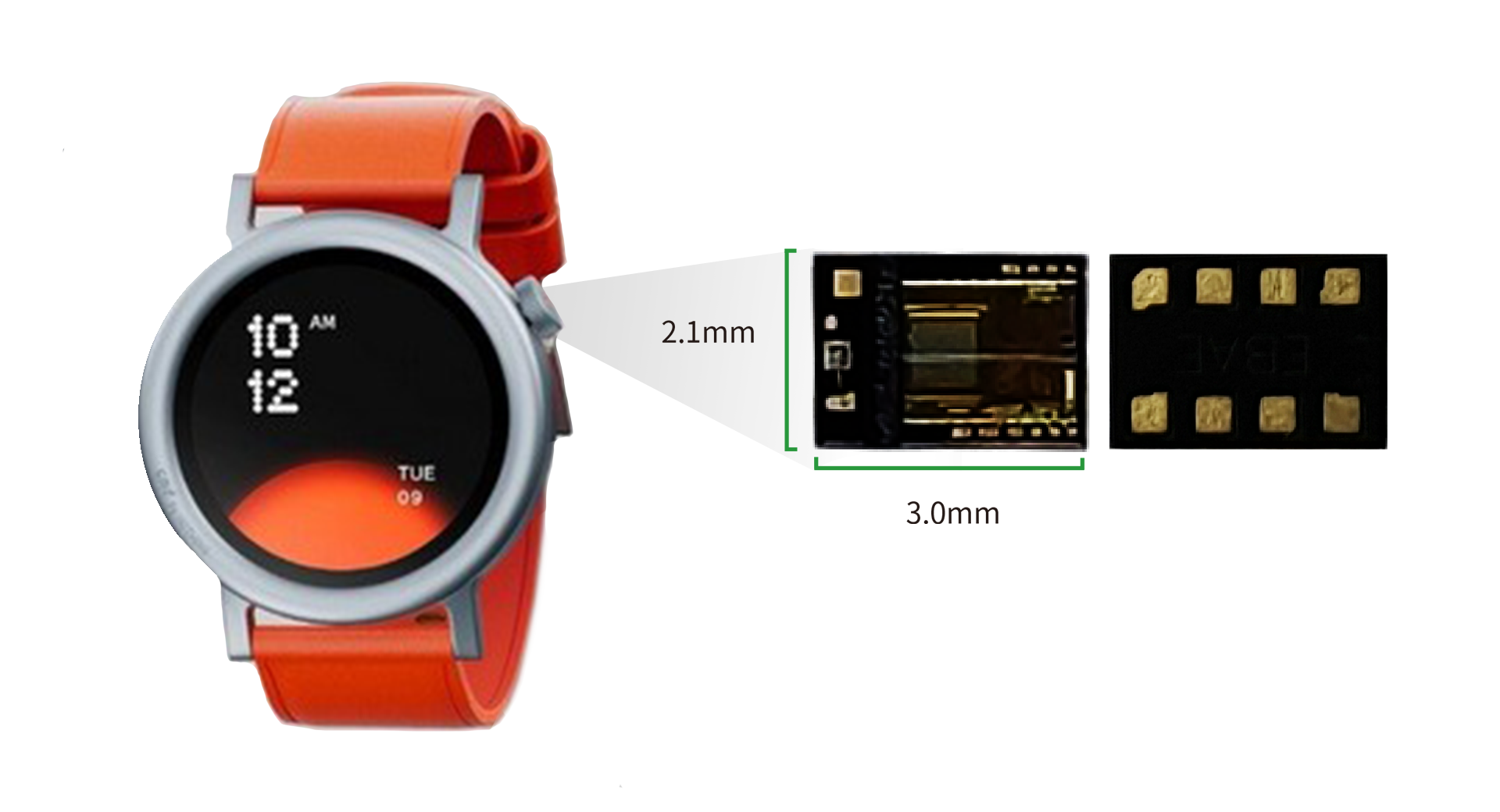 美芯晟表冠检测光学追踪传感器基于激光成像技术,通过激光反射获取连续的物体表面图像并透过内置算法确定物体的运动,从而能够在不锈钢平面上为用户提供实时、微距、高精度、超低功耗的水平移动和旋转角度检测,旋转角度分辨率精确至0.1°,主要应用于智能手表、智能手环、智能眼镜等设备的表冠旋转及按压检测等。
