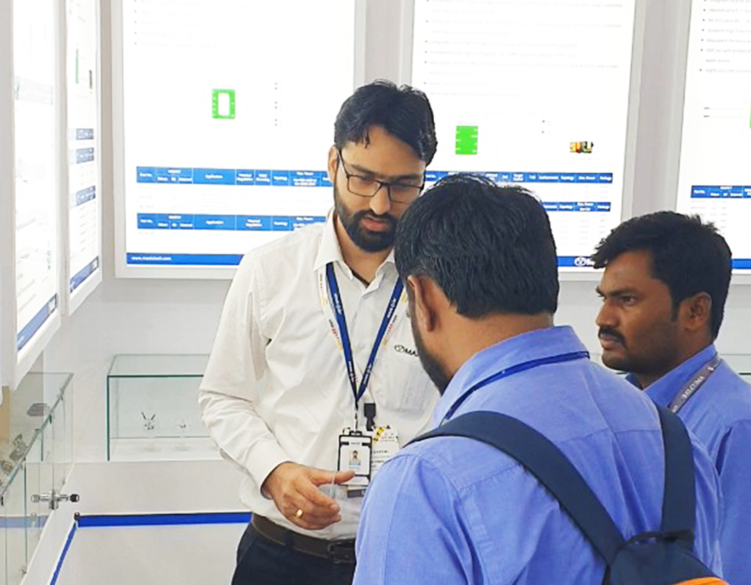 印度展小分队的工作人员热情接待每一位访客,并耐心讲解公司的概况和产品,服务好每一位关心和支持美芯晟的合作伙伴和客户朋友。