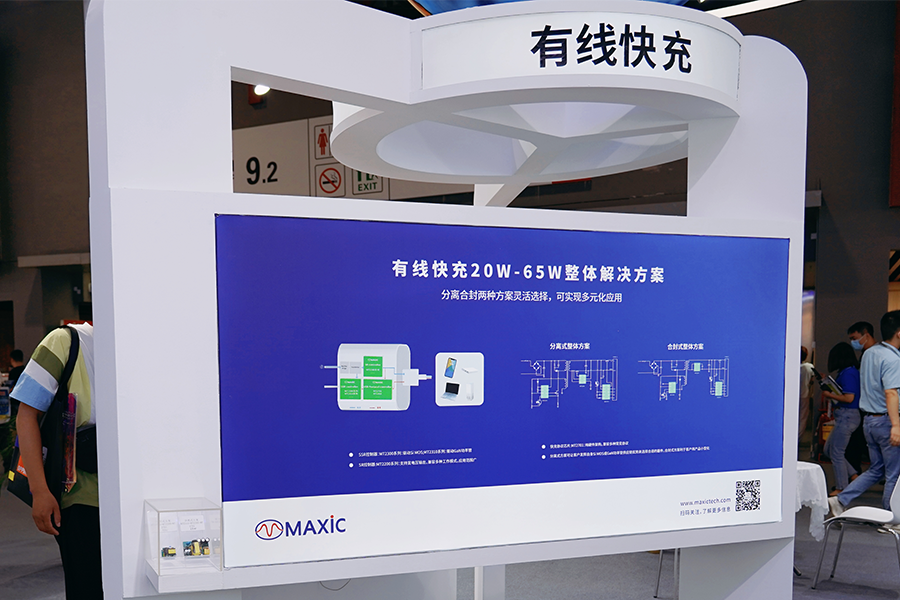 有线快充和信号链展区 展出美芯晟最新研发产品,有线快充20W-65W整体解决方案和全集成超低功耗光学接近检测传感器MT3101。