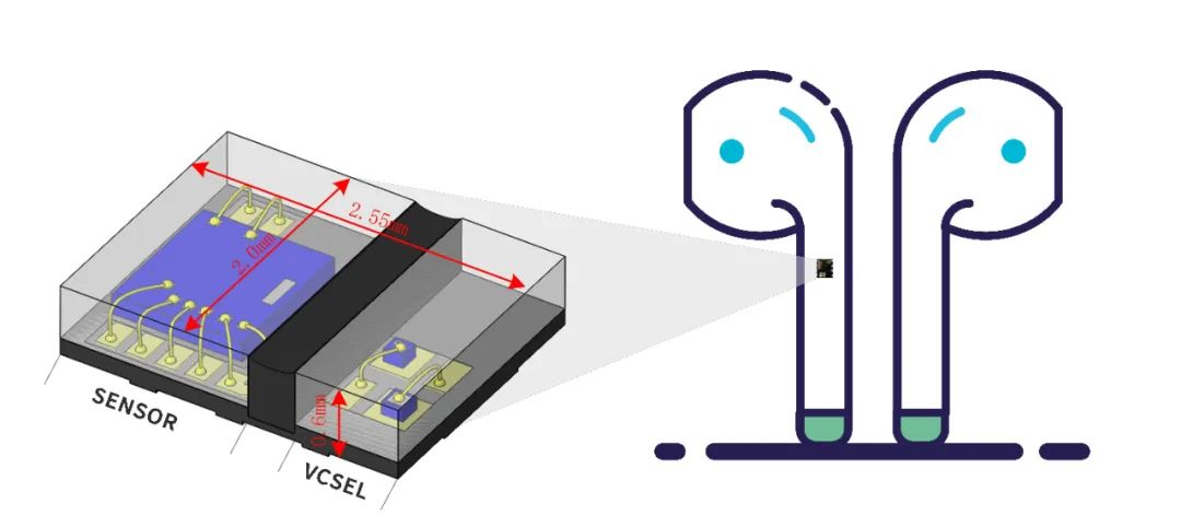 全集成SENSOR、940nm VCSEL以及ZENER,外围元器件少