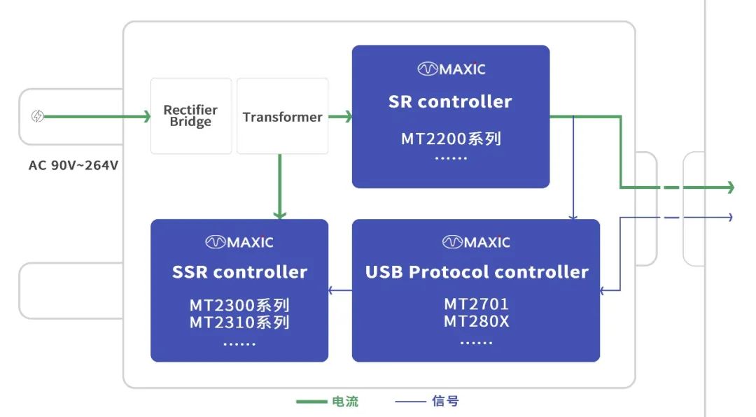 同步整流(SR)控制器MT2200系列,可用于high side也可用于low side,可支持的原边最高工作频率在200KHz以上,并支持QR和CCM等多种工作模式,满足现有常见快充应用。