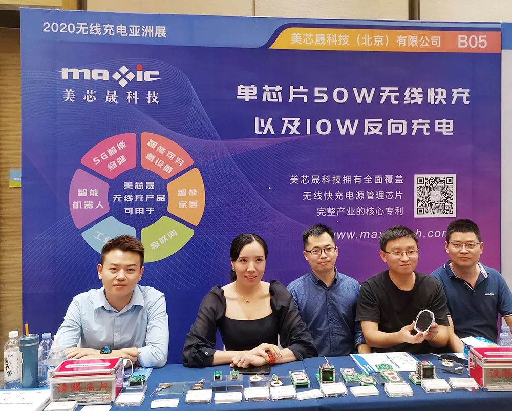 本次展会,美芯晟科技为现场观众带来了从可用于手机终端的单芯片50W接收芯片到用于TWS耳机5W小功率接收芯片,以及覆盖15W和50W的无线充电发射端SOC芯片。并对接收端、发射端无线充电产品进行全方位的演示和技术优势的讲解。