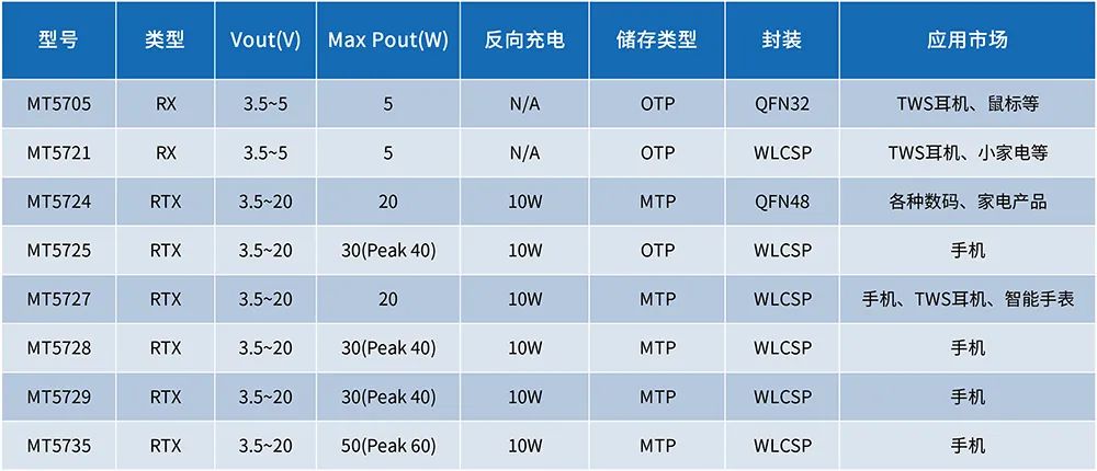 此次展示的接收端产品有MT5705,MT572X系列以及MT5735。功率覆盖5W至50W,根据市场需要可支持反向充电功能,产品可广泛应用在手机、智能手表、TWS耳机、小家电、数码等智能产品中。