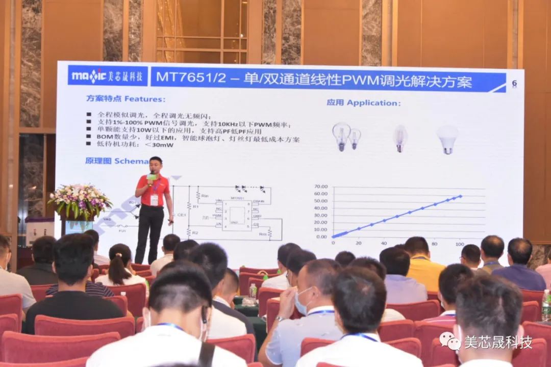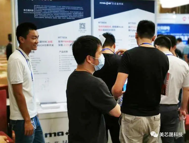 美芯晟科技中山办工程师们热情的接待每一位到展台的观众,专业耐心的讲解美芯晟本次会议展示的新产品,其中包括高PF非隔离MT951X/2X/3X/4X、高PF隔离MT7939/38,低PF非隔离MT777X、新欧标线性方案MT7618N,双压线性MT7608,智能调光MT971X、MT765X,以及供电芯片MT880X系列等。