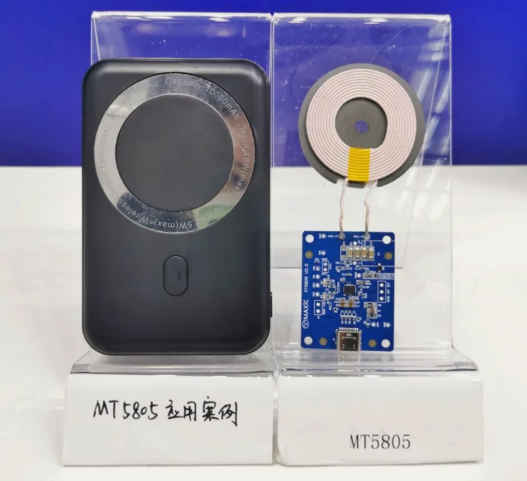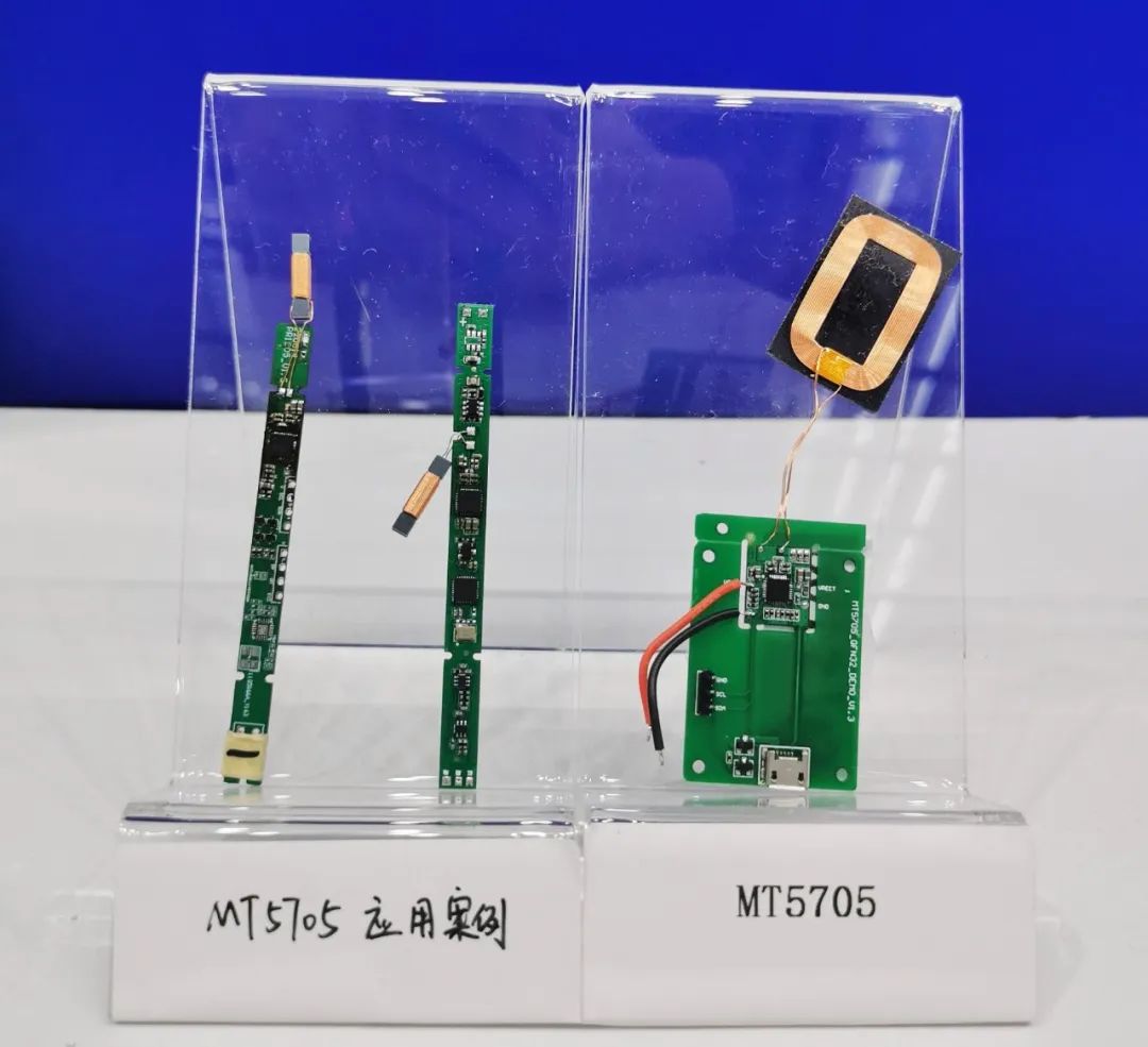发射端芯片,为大家带来了全集成、超低功率、高精度的MT5805,并在现场准备了内置MT5805的磁吸充电宝(自启动应用,速度更快,功耗更低),以便广大客户可以更加直观地感受该芯片的实际应用效果。